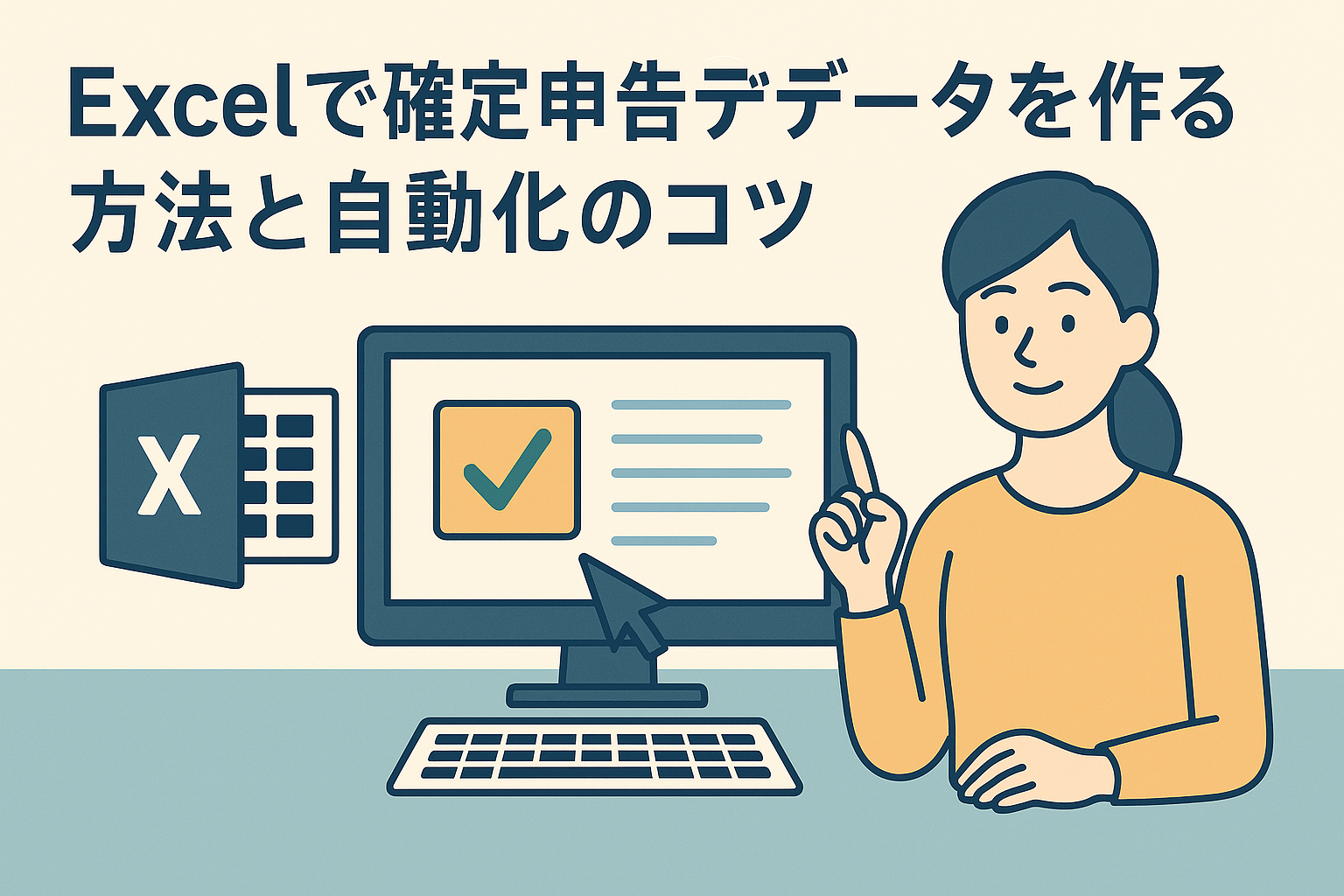 確定申告を効率化するためのExcelテンプレート活用法を解説。収入・経費・控除・集計シートの具体的な構成例から、入力ミスを防ぐ工夫、AIと組み合わせた自動分類・集計による申告準備の効率化まで、初心者にもわかりやすく紹介します。